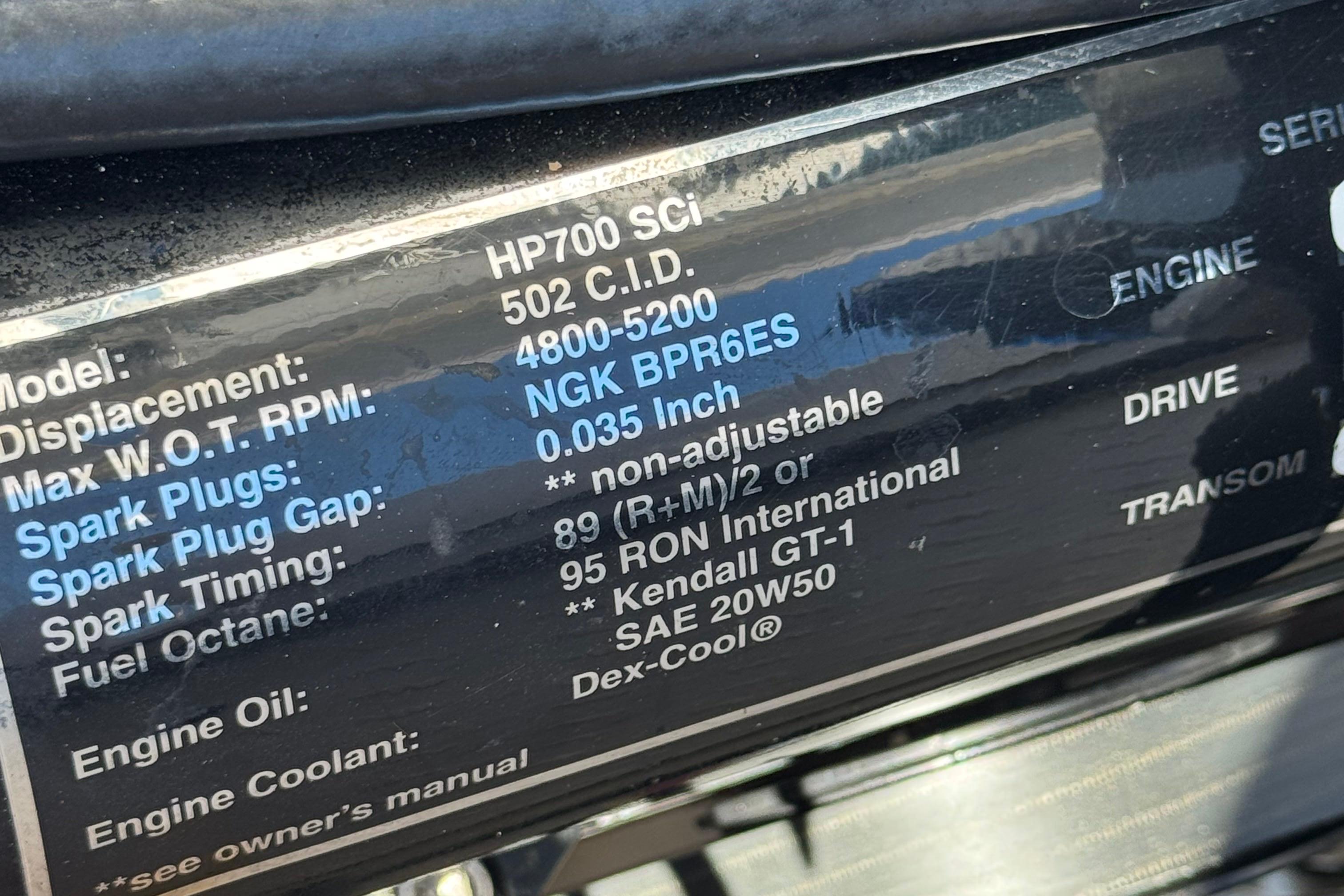 Total Power: 700|horsepower Engine Brand: Mercury Racing Year Built: 2014 Engine Model: 700 SCI 8.23L Engine/Fuel Type: unleaded Engine Hours: 179 Engine Power: 700|horsepower